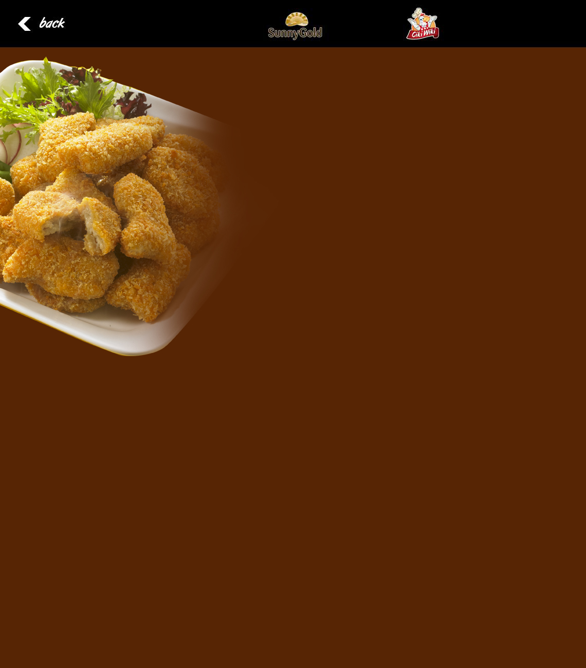 Nugget ayam Sunny Gold dan Ciki Wiki dilapisi tepung roti dan tersedia dalam berbagai bentuk seperti original planar, kotak memanjang, dan bentuk karakter