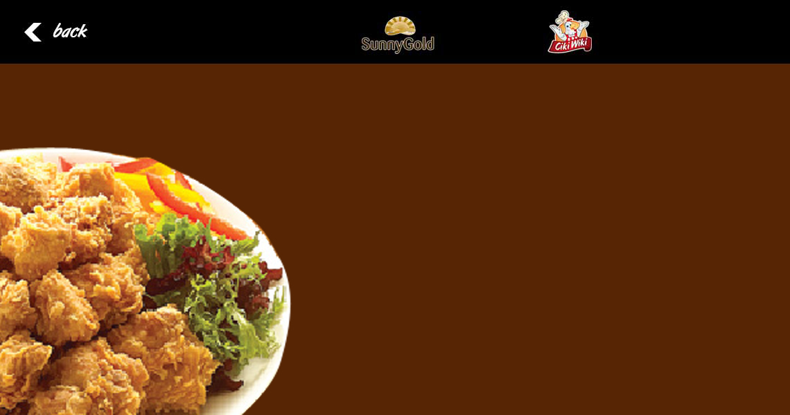 Sunny Gold Chicken Karaage diadopsi dari konsep Japanese Karaage, tetapi telah dimodifikasi dan disesuaikan dengan cita rasa khas Nusantara dan dijamin